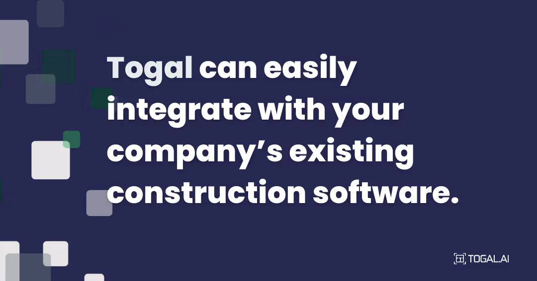 - Integrate with third party softwares - Togal.AI can easily integrate with existing construction softwares. Resulting in a smoother and more efficient workflow.
