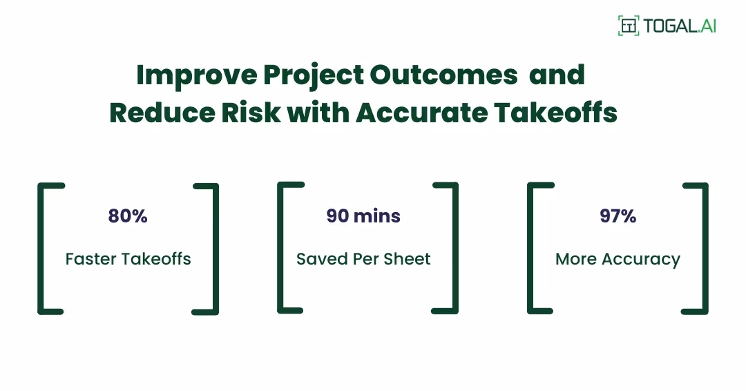 - Shift focus towards value-generating activities - With Togal.AI’s efficiency, general contractors can shift their focus towards value-generating activities such as identifying the scope of work, value engineering, and identifying the right trade partners.