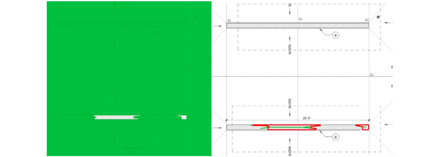Besides this, an AI-automated takeoff was performed to assess the capability of the AI tools and determine which outputs could serve as a starting point for calculating the quantities of isolated footings, the concrete volume (CY) based on footing dimensions, and the approximate net area of the concrete slab. Also, this initial takeoff allowed the identification of potential areas where the AI might present inconsistencies. Most of these issues were related to drawing type, drawing quality, and the AI’s difficulty distinguishing among various elements within the floor plan. From the results obtained, the net area classification was later used to calculate the area of the concrete slab.
