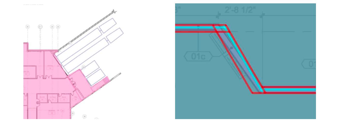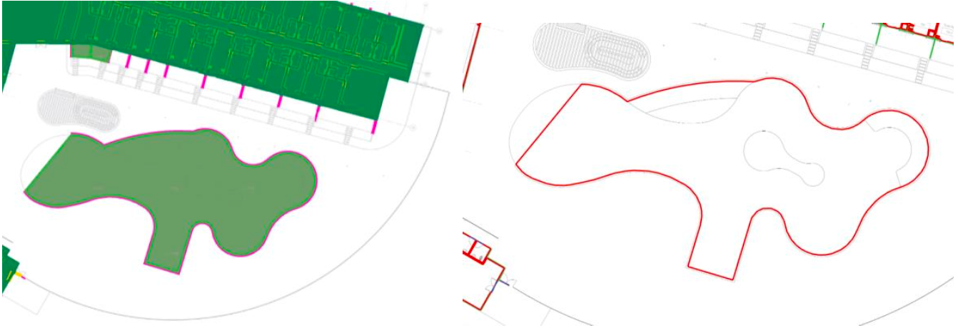 Inconsistency when recognizing and tracing one of the trench drains in the area quantities (net area and wall perimeter, and center line).