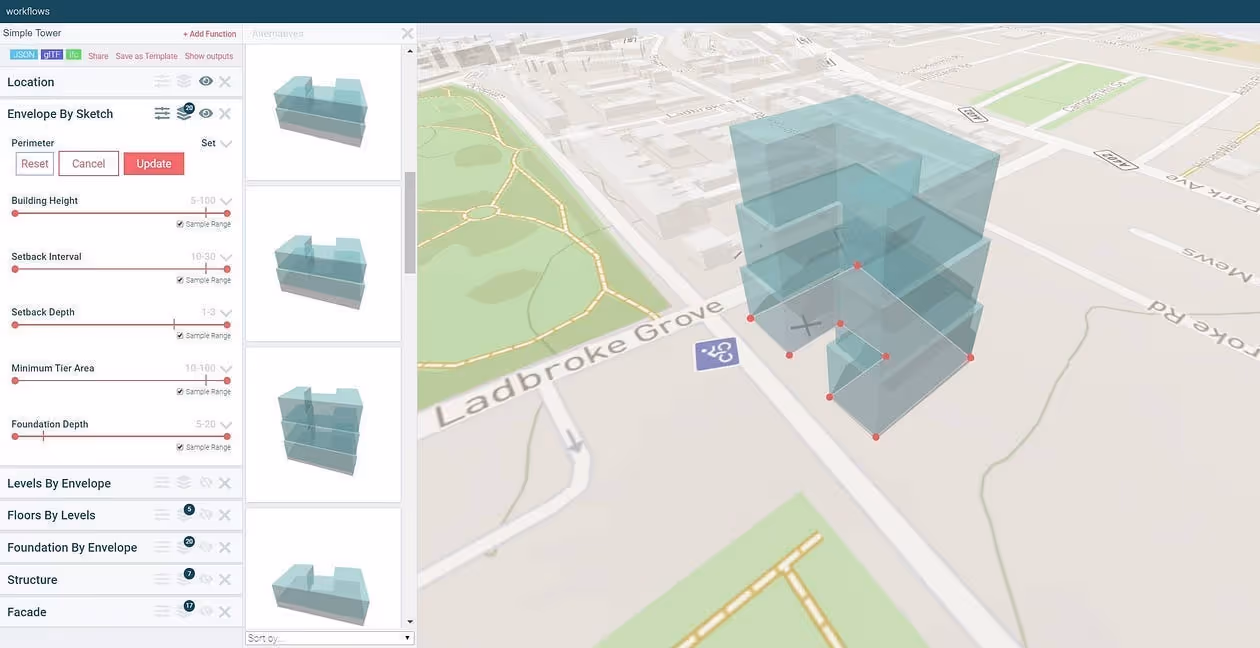 As the design progresses into the development phase, tools like Augmenta and Hypar offer intelligent design optimization. Augmenta is an AI-driven cloud-based platform that automates building design, creating cost and energy-efficient code-compliant designs, including precise electrical system design in hours instead of weeks.
