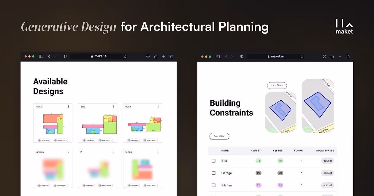 Maket.ai offers architectural designers an AI-driven software platform that can instantly produce thousands of plans tailored to client requirements and environmental considerations. On the other hand, ARCHITEChTURES is a web tool empowered by AI, enabling residential building designers to significantly reduce design time and make well-informed decisions.